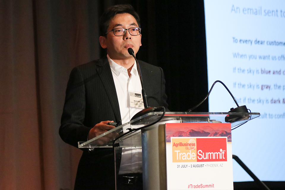 El Dr. Wayne Tan inició su charla en el AgriBusiness Global Trade Summit el 1 de agosto con un diciendo que se extendió por Internet en China el año pasado.