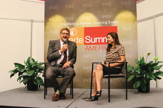El editor senior Jackie Pucci entrevista al director de operaciones de AMVAC, Bob Trogele, durante la Cumbre Comercial - Américas.