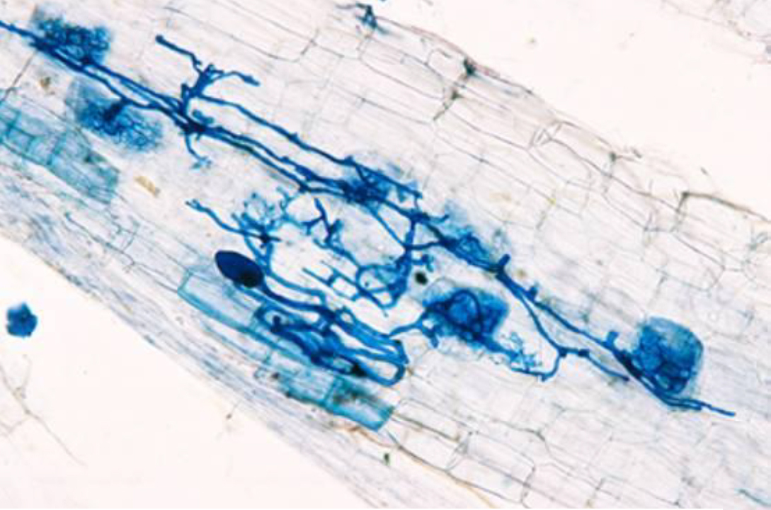 Figure 1: Arbuscular mycorrhizal fungal colonisation inside roots, showing typical fungal