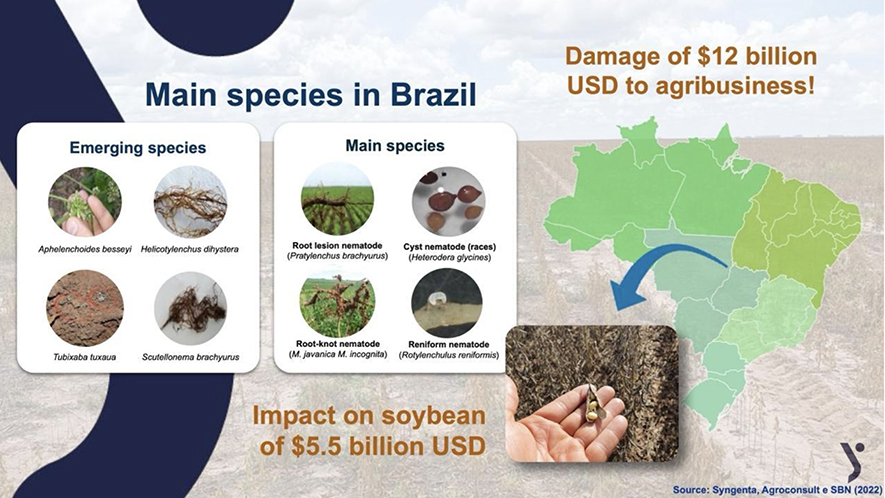 In Brazilian agriculture, soybeans and corn remain the cornerstone crops, with extensive acreage and significant economic importance. However, nematode pressure continues to escalate, becoming one of the most critical biological stressors threatening crop yield and quality. Even when farmers shift to other cash crops, nematode persistence and adaptability often lead to cross-crop infestations, posing broader risks to agricultural ecosystems.