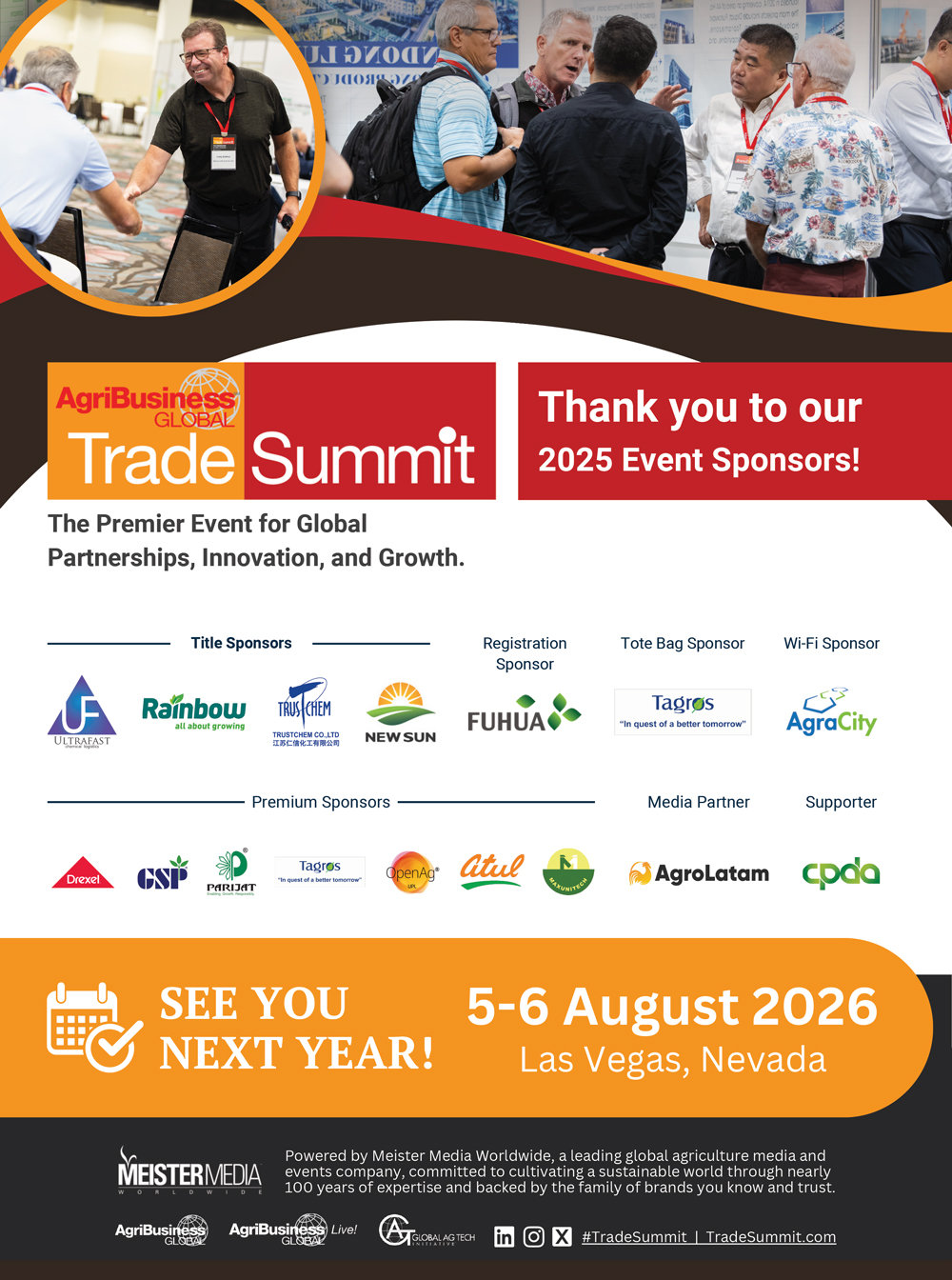 为期两天的 AgriBusiness Global 贸易峰会 于2025 年 8 月 5 日至 6 日盛大召开,峰会讨论了关税、地缘政治和其他挑战,帮助全球行业领袖进行学习并制定 2025 年及未来的经营计划。